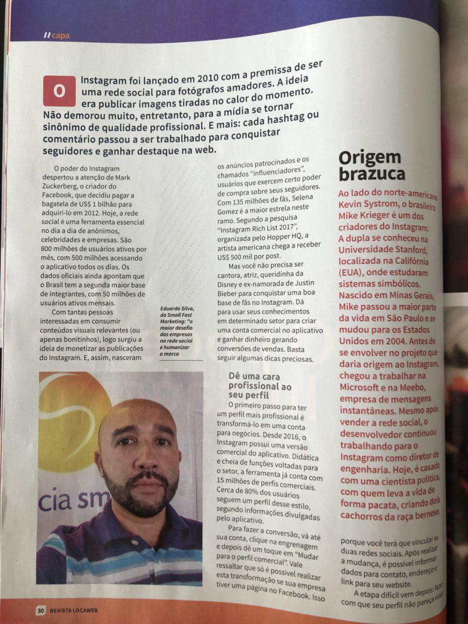 Você sabe como usar cada uma das ferramentas disponíveis nessa rede social para criar um perfil comercial de sucesso, de forma orgânica, e gerar conversões? Nosso sócio-diretor de novos negócios, Bruno Estrela, deu uma entrevista para a Revista Locaweb – edição #79 – falando um pouquinho sobre o assunto.